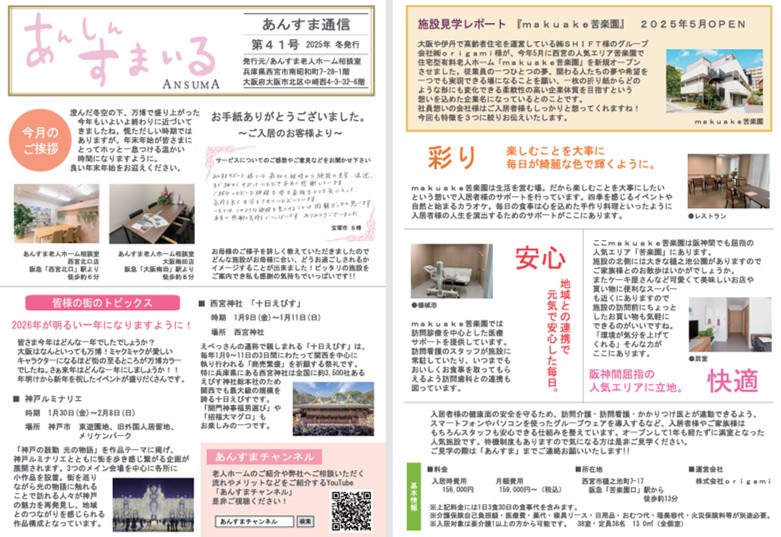 相談室より老人ホームお役立ち情報誌『あんすま通信』の第41号・冬号を発行いたしました。